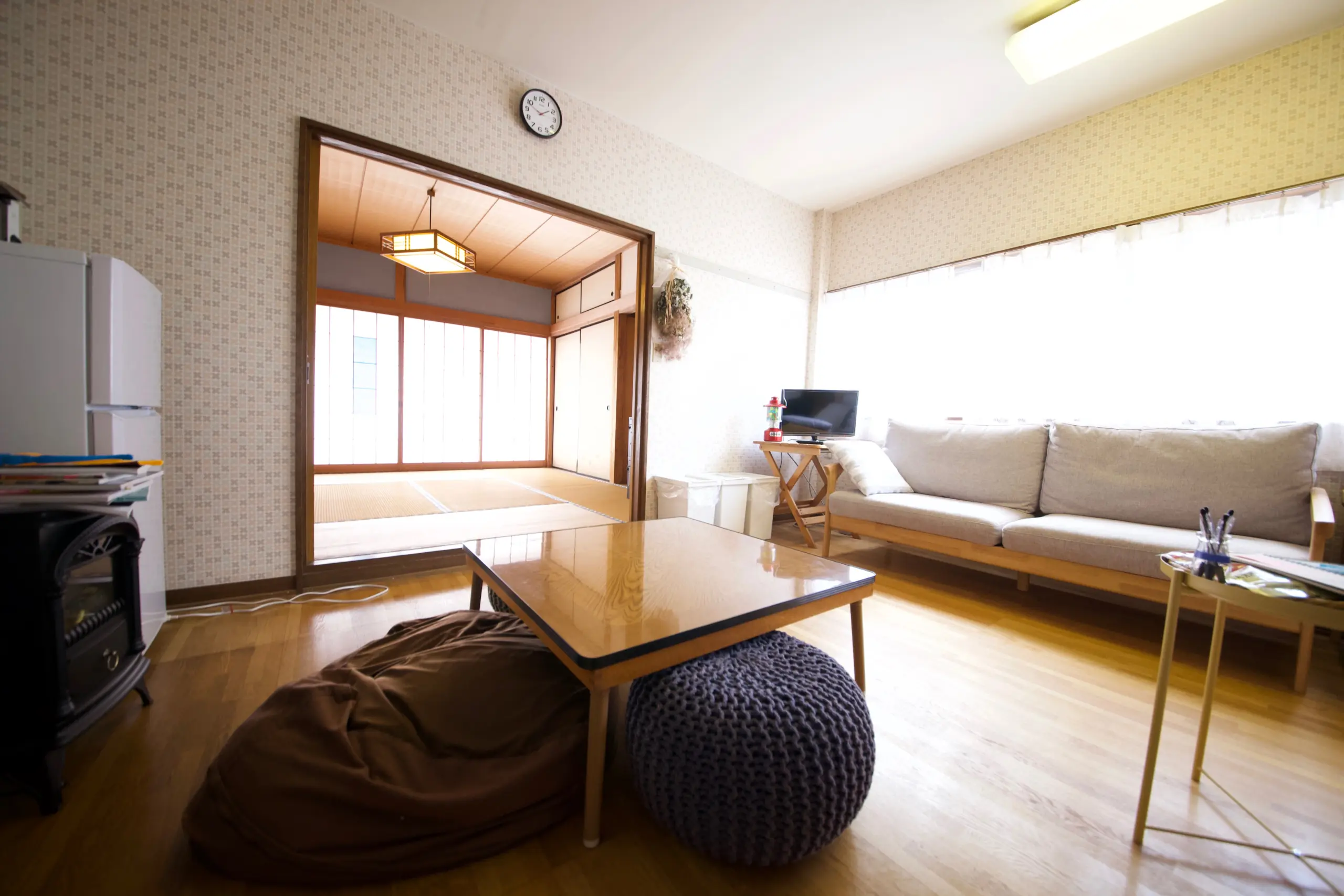 那須塩原の日常を感じられる旅宿です。男女別相部屋または個室。トイレ・風呂・キッチン・リビング共用。