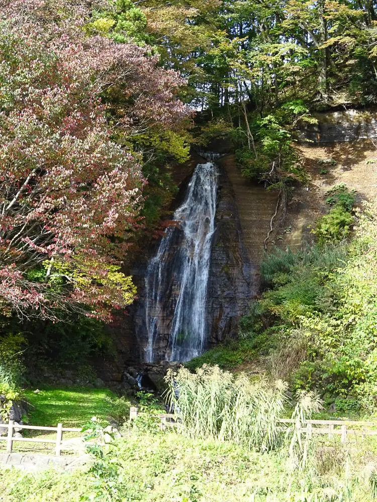It flows down from Yokai, a place where the lord of Shiobara once had a castle. The waterfall is beautiful with its piled up rock layers.