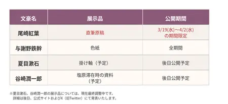 夏目漱石、谷崎潤一郎、島崎藤村、室生犀星、尾崎紅葉、国木田独歩、幸田露伴、徳冨蘆花、斎藤茂吉、与謝野鉄幹