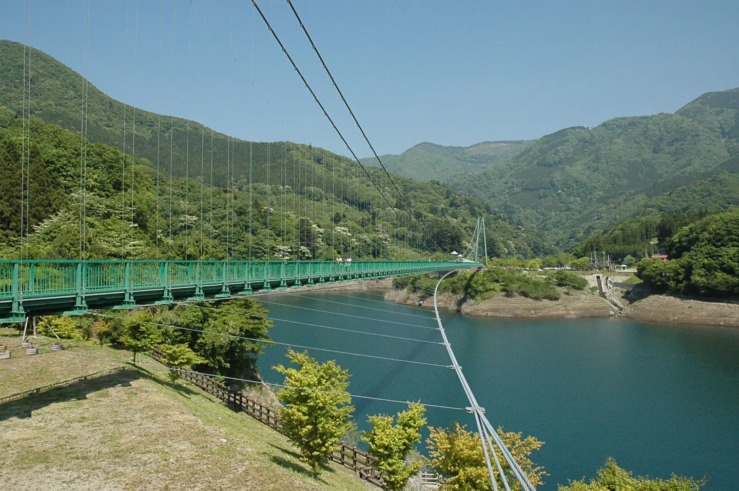 현수교를 둘러싼 웅대한 시오바라 계곡은 방문한 사람을 봄 여름 가을 겨울, 사계절의 아름다운 경관으로 맞이해 줍니다. 단풍 골짜기 오스쿠바시는 길이 320m로 무보강 거더 보도 매달아교로는 혼슈 제일의 길이를 자랑합니다. 공중 산책 · 물산점 · 직매소 · 소프트 크림 코너 · 레스토랑도 있습니다.