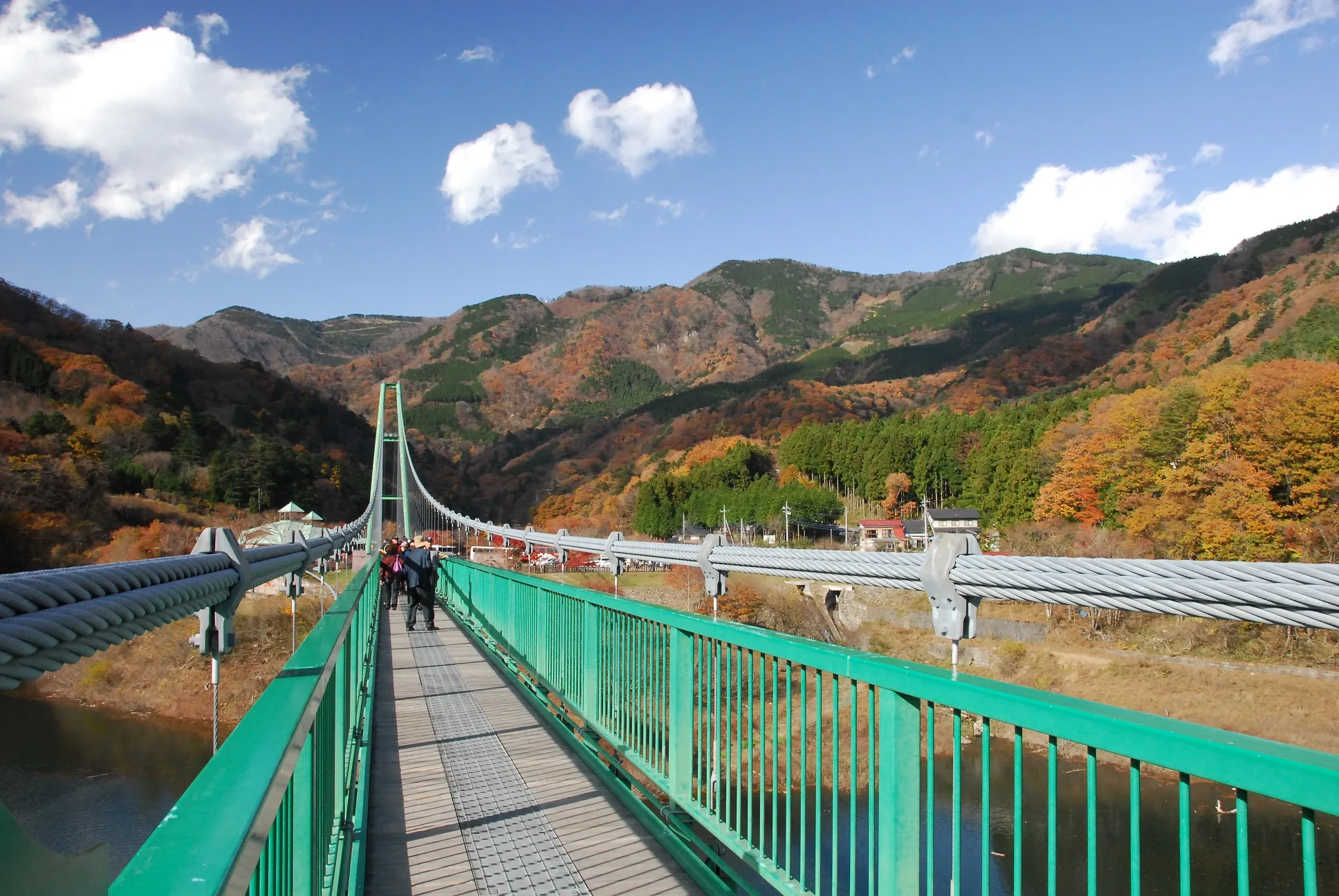 ダム湖に架かる塩原最長の吊橋。四季折々の眺めを満喫しながら空中散歩が楽しめます。恋人の聖地にも選定されていて、デートにもオススメです。