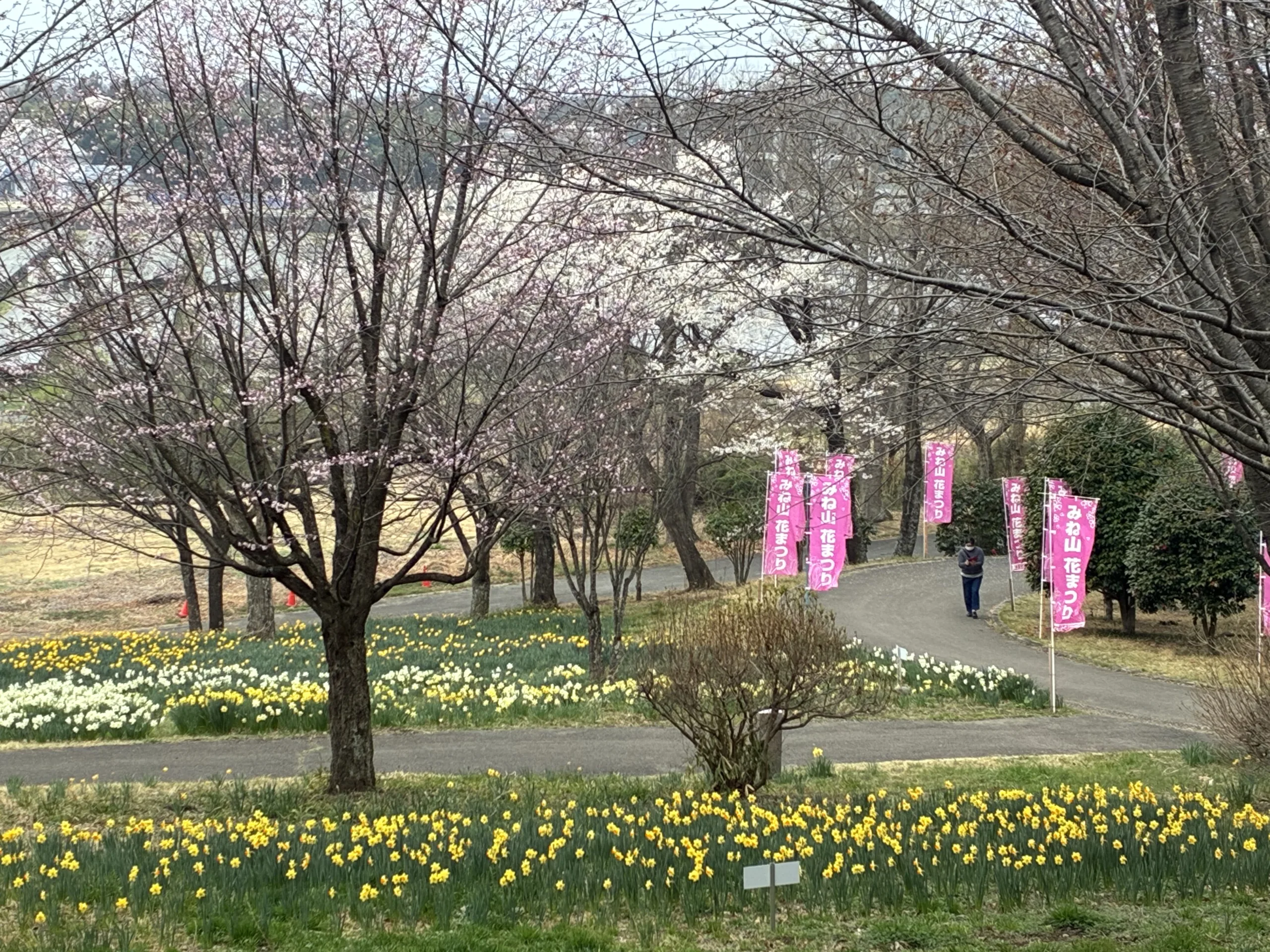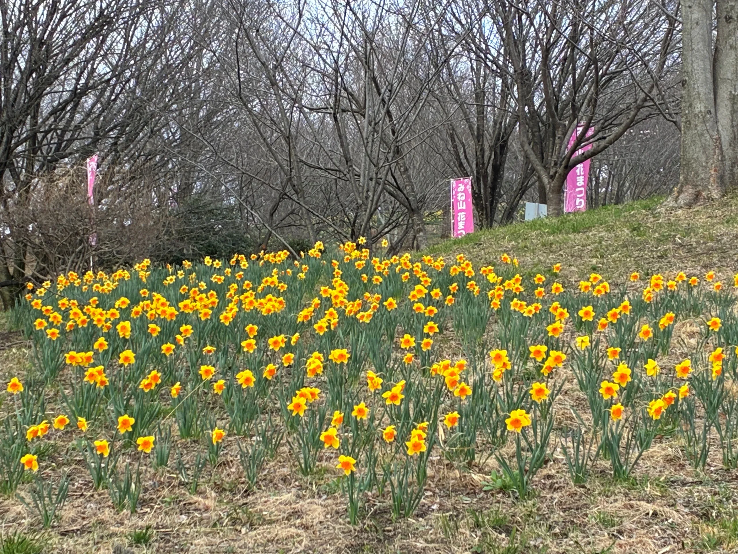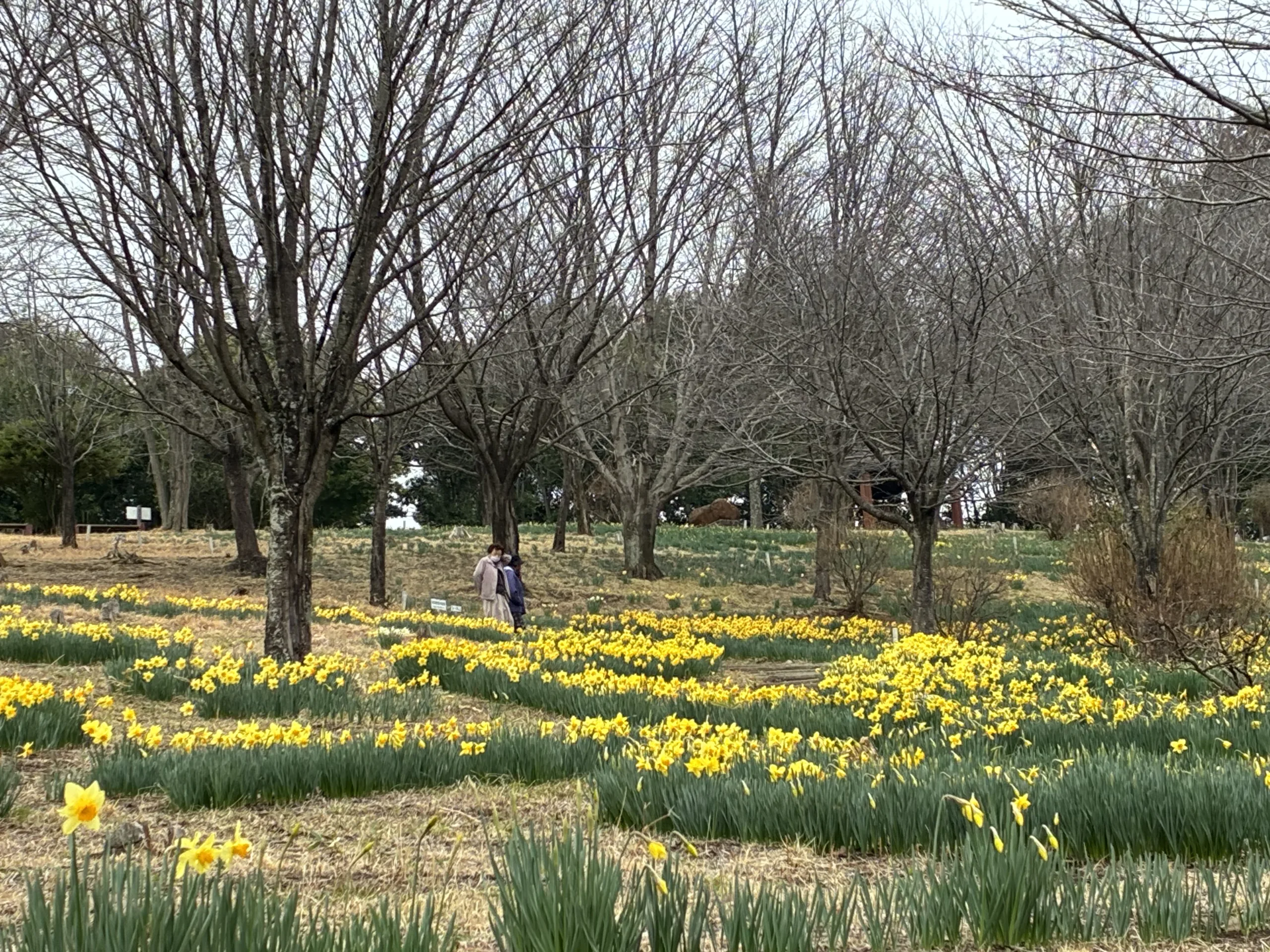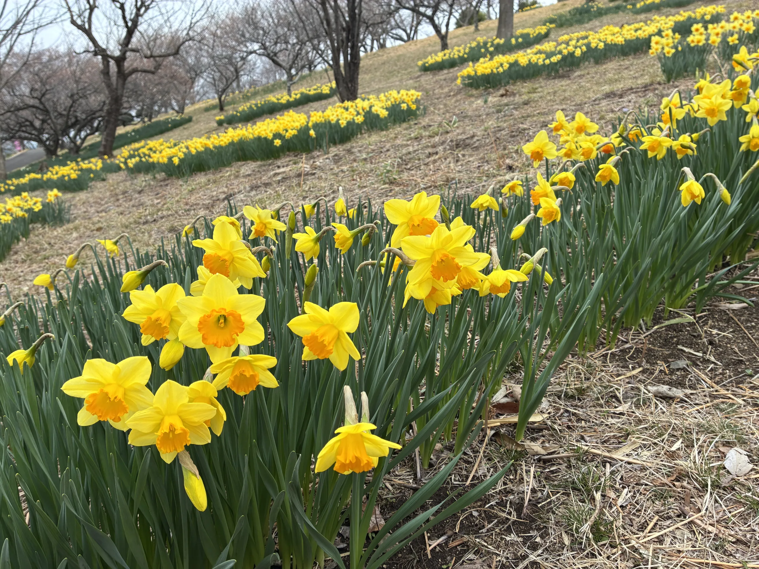 春の訪れを告げるとともに、黄色い絨毯(スイセン)が広がりました。現在、東那須野公園では約15万株のスイセンが咲き誇ています。