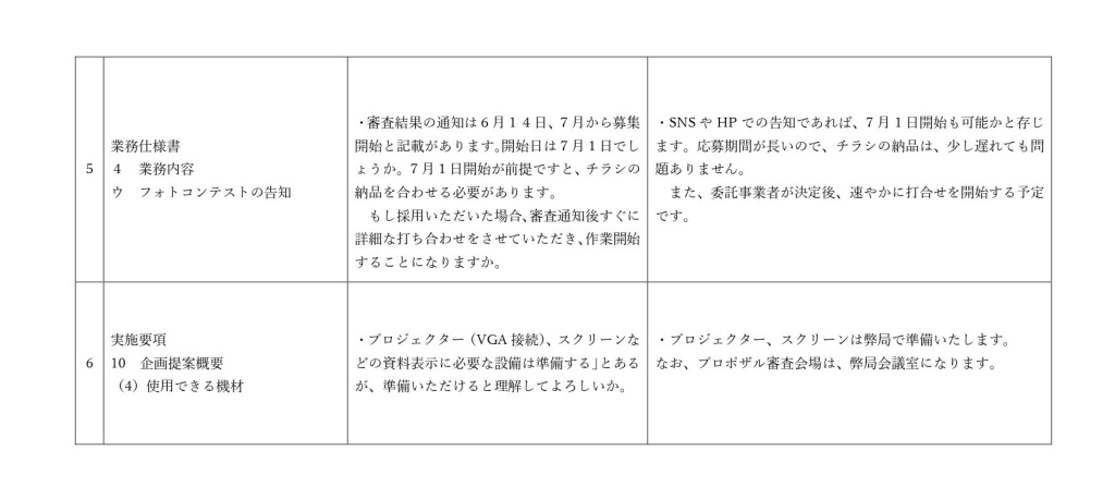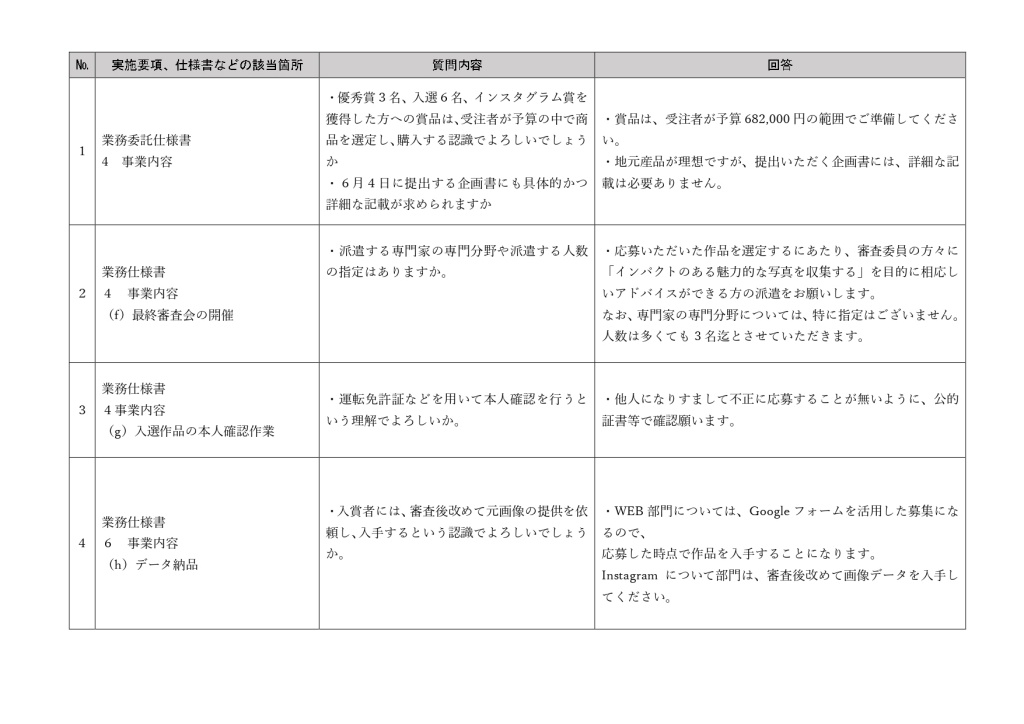 令和6年5月16日(水曜日)までに質問のあった内容につき、以下のとおり回答します。