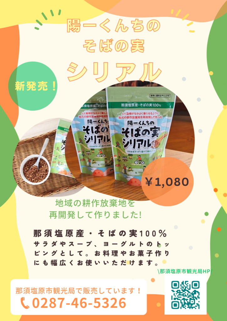 新発売!陽一くんちのそばの実シリアル 那須塩原市観光局で販売しています!