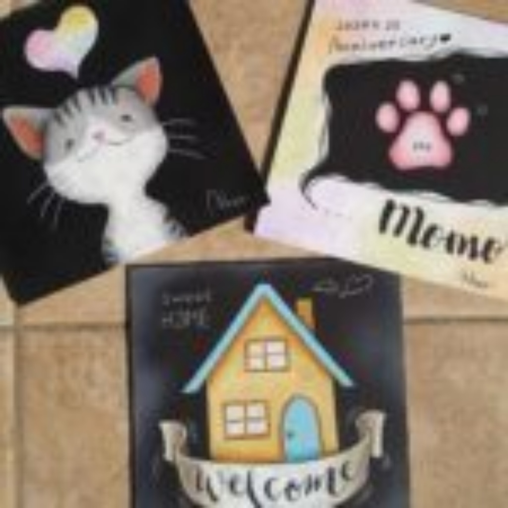 また、黒のボードにオイルパステルと指でグラデーションを作りながら立体的に描くチョークアートや、ナイフ一本で絵を描くように彫り上げるカービング等、