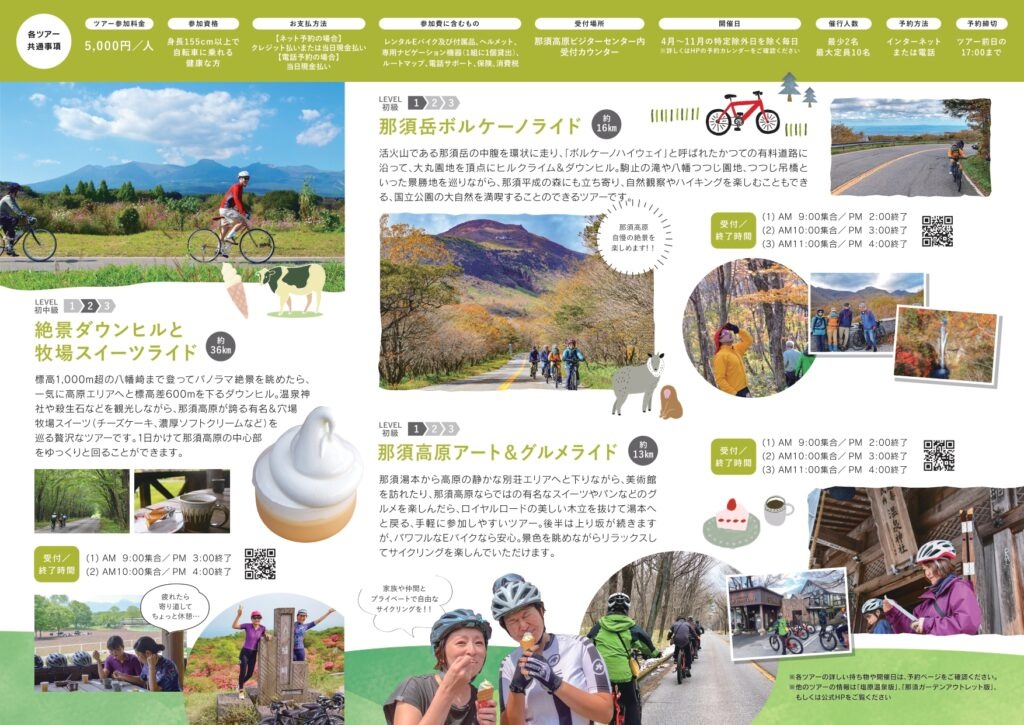 ・那須ガーデンアウトレット拠点:ライドエクスペリエンスツアーデスク:☎0287-74-5585