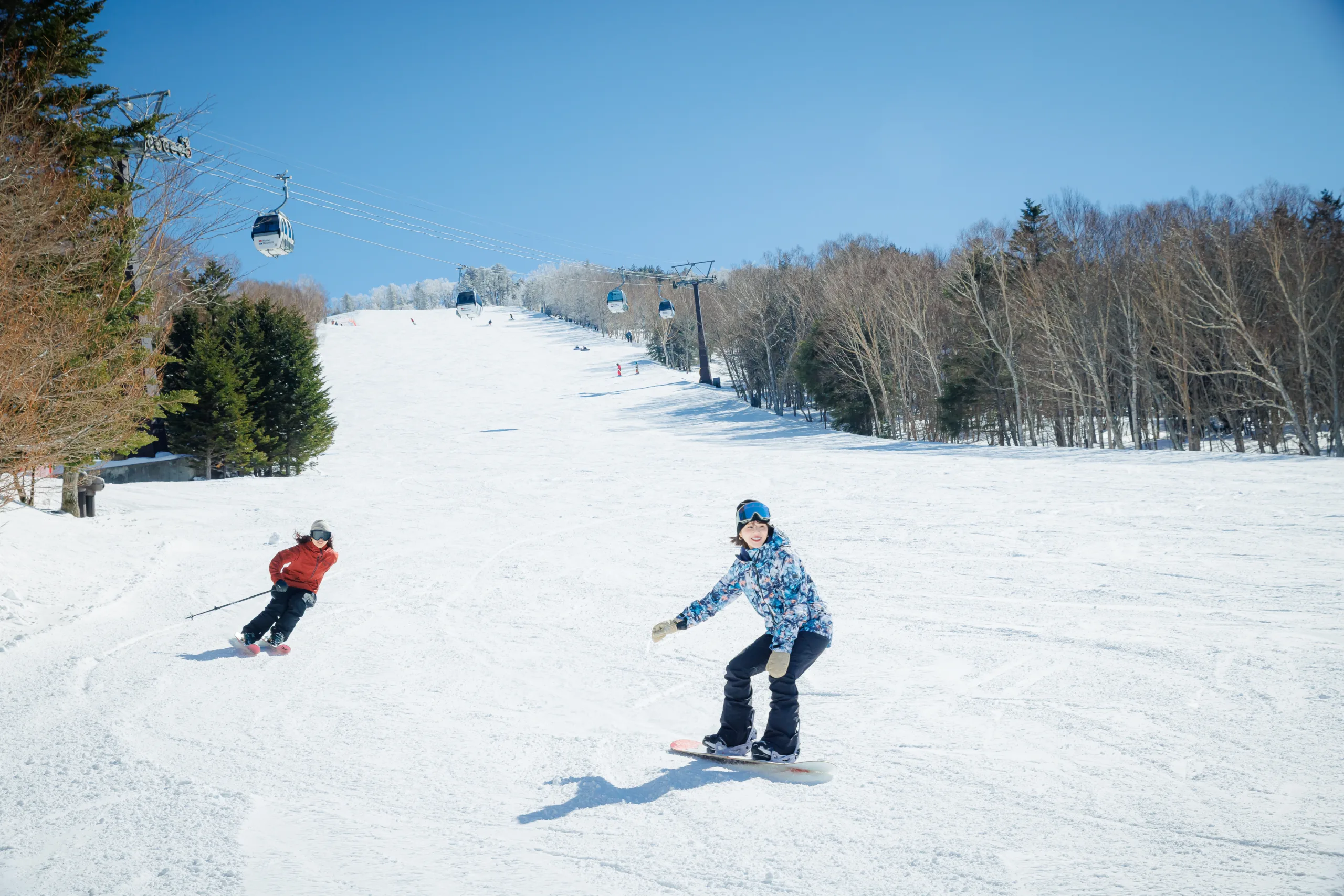 夏はキャンプ場、秋は紅葉ゴンドラで標高1,643mからの絶景空中散歩を楽しめます。冬は首都圏最大級のゲレンデとして人気があり、全12コース、3000mのダウンヒル。初心者から~上級者まで大満足間違いなし!