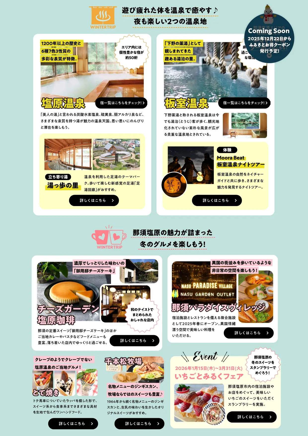 「雪も温泉も満喫!冬の那須塩原」ウィンターキャンペーン開催の知らせ