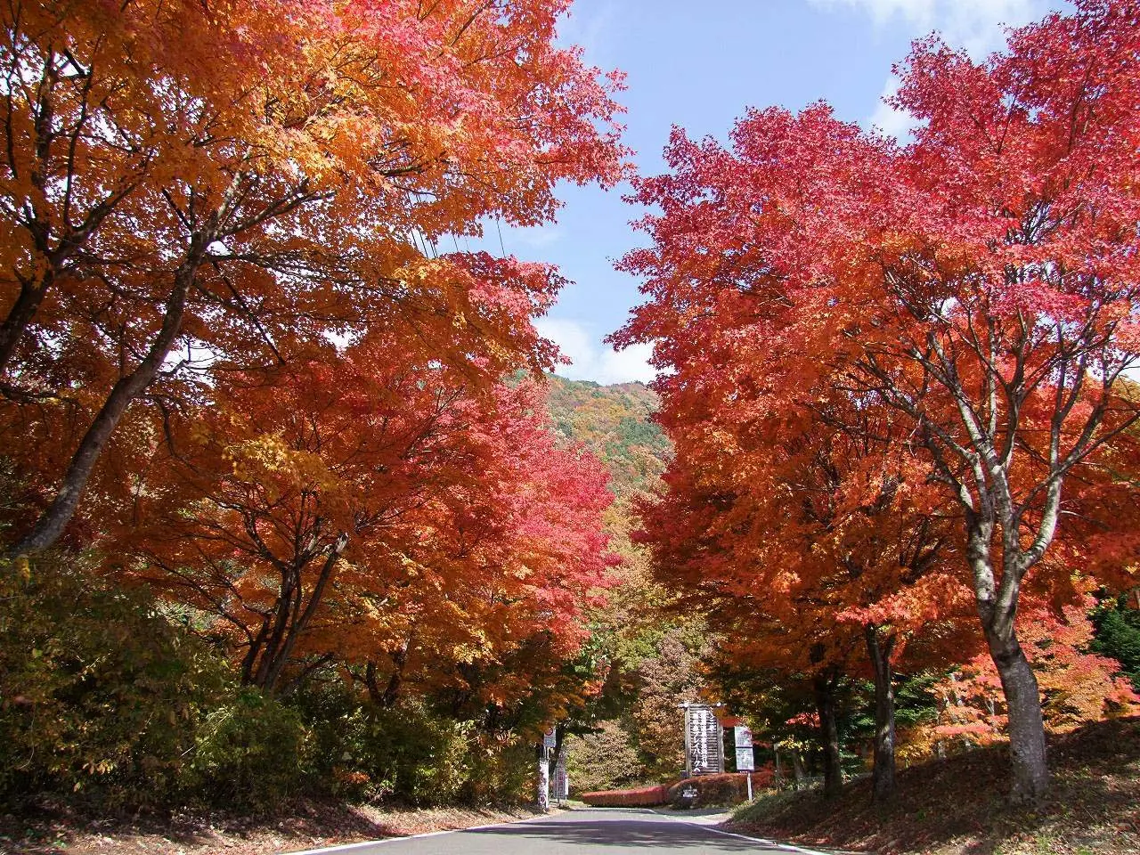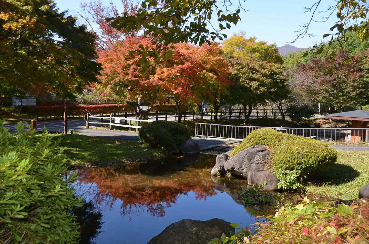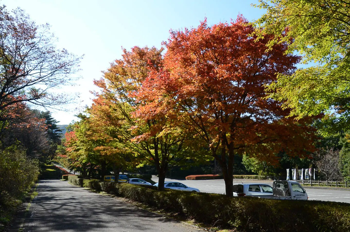 ใบไม้เปลี่ยนสีอันสวยงามรอต้อนรับคุณตั้งแต่ทางเข้าสวนสนุกฮาโกโนโมริไปจนถึงสวนสาธารณะ