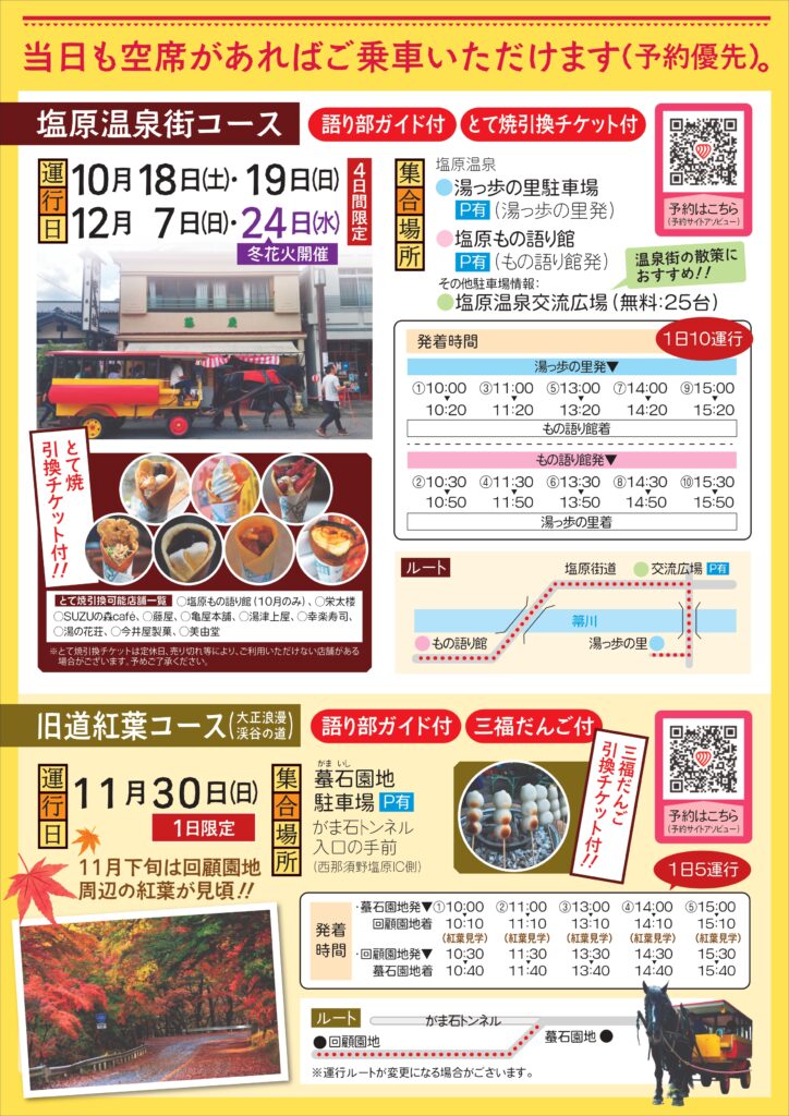 区間:塩原温泉湯っ歩の里 ⇄ 塩原もの語り館 運行回数:計10運行